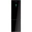 Корпус отдельно стоящий, глубокого чёрного оттенка, высота 201 см, ширина 59,5 см и глубина 65 см — пропорции удобны для стандартных ниш и позволяют экономно использовать пространство. Двухдверная компоновка с морозильной камерой внизу и правым дверным упором упрощает доступ к продуктам: чаще используемая холодильная секция располагается на уровне глаз, а нижняя камера скрывает замороженные запасы. На дверце расположен цифровой дисплей с сенсорными кнопками, благодаря чему настройки видны всегда и легко корректируются одним касанием.