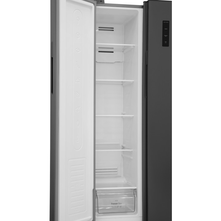 Данная модель — отдельностоящая, поэтому нужно тщательно подобрать место для ее размещения. Холодильник Side-by-Side с необычным расположением камер — сбоку друг от друга — позволяет увеличить объем продуктов для хранения. Такой вариант подходит обладателям просторной кухни, большим семьям, людям, которые запасают продукты и готовят впрок. Количество камер: 2.
