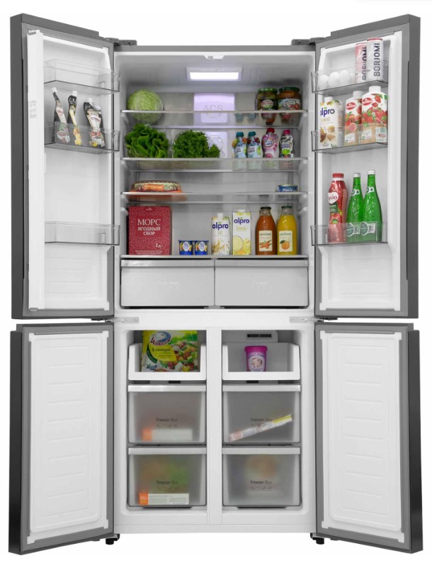 Четырех-, пяти- и шестикамерные модели включают, кроме морозильной и холодильной камер, отдельную зону свежести (иногда состоящую из сухого и влажного отсеков) и специальный отсек для ледогенератора, а в некоторых случаях еще и винное отделение.