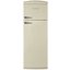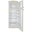Бежевый холодильник в ретро-стиле с небольшой морозильной камерой наверху. Благодаря автоматическому размораживанию за прибором легко ухаживать, светодиодное освещение позволяет без проблем загружать продукты. В холодильной камере 8 полок, включая те, что на дверце, и специальный держатель для 5 бутылок.