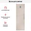 выглядит солидно и сдержанно: вертикальный отдельно стоящий морозильник в отделке «бежевый мрамор», высотой 186 см и с габаритами 186×59.5×65 см. Одностворчатая дверь с левым упором придаёт корпусу ясную геометрию, а дверца украшена встроенным цифровым дисплеем — элементы управления расположены на наружной панели, что упрощает доступ к настройкам. Общий вид этого агрегата подчёркивает монолитность и продуманную высотную планировку, которая видна сразу при взгляде на фасад.
