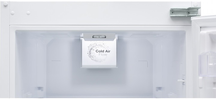 No Frost (Total No Frost, Frost Free): вентилятор обеспечивает циркуляцию охлажденного воздуха, благодаря чему лед не нарастает на стенке, а концентрируется только на скрытом внутри холодильника испарителе. Талая вода собирается в специальной емкости и испаряется. Такой холодильник не нужно размораживать – это экономит время и позволяет не останавливать прибор. Благодаря этим плюсам в современных моделях No Frost – самая распространенная система.