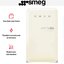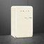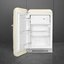 Холодильник Smeg FAB10LCR6 выполнен в мягком кремовом оттенке с выразительными ретро-линиями и аккуратной ручкой, что делает его заметным элементом интерьера. Компактные габариты 97—98×54.5×65.9 см позволяют разместить прибор в небольшой кухне или зоне отдыха. Глубина с ручкой 70.1 см и левый дверной упор учитываются при планировке проходов и установки рядом с мебелью.
