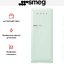 Холодильник Smeg FAB28RPG6 сразу привлекает взгляд своим пастельно-зелёным корпусом и ретро-стилем 50-х годов, который станет акцентом на кухне. Эта отдельно стоящая модель компактна по высоте и ширине, но вместительна по функциям и объёму, при этом морозильная камера расположена сверху, а дверной упор — справа, что упрощает интеграцию в планировку.