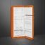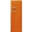 Холодильник с морозильной камерой в стиле 50-х годов оранжевого цвета. Дверь нельзя перевесить на другую сторону. В камерах есть фиксированные и регулируемые полки из закаленного стекла, выдвижные ящики, в том числе отдельная зона свежести. Размораживание двух типов: автоматическое и ручное.