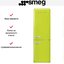 Smeg FAB32RLI5 — отдельно стоящий двухдверный холодильник с правой дверцей высотой 197 см и шириной 60 см для большой кухни. Его отличает оригинальный цвет лайма и дизайн в духе 50-х годов. Морозильная камера объемом 97 литров расположена снизу и содержит 3 больших ящика. Она оснащена системой размораживания No-Frost, поддерживает автономное сохранение холода в течение 40 часов. Для хранения мяса и рыбы служит зона свежести Life Plus 0°C. Полки из закаленного стекла регулируются по высоте.