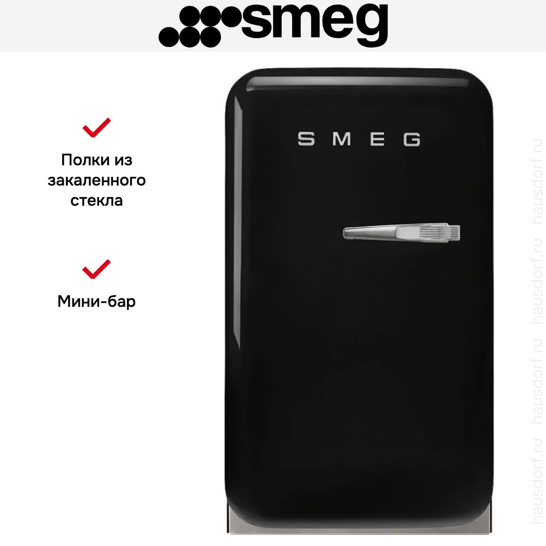 Мини-бар Smeg FAB5LBL6 — компактное и выразительное решение в стиле 50‑х годов для тех, кто ценит ретро‑эстетику и современную функциональность. Его лаконичная черная отделка и внешняя ручка создают заметный акцент в интерьере. Корпус высотой 74 см и шириной 40,4 см удобно размещается в небольшой кухне, гостиной или гостиничном номере. Глубина 50 см и 56,9 см с ручкой помогут правильно спланировать отступ от стены и дверной проем.