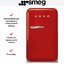 Отдельностоящий мини-бар Smeg FAB5RRD6 — яркий акцент для кухни, гостиной или офиса, сочетающий ретро-эстетику и компактные размеры. Его насыщенный красный корпус делает прибор заметным элементом интерьера, а хромированная внешняя ручка облегчает открытие и подчеркивает стиль. Высота 74 см позволяет использовать устройство как независимый модуль или поставить под столешницу, если предусмотрен небольшой зазор.