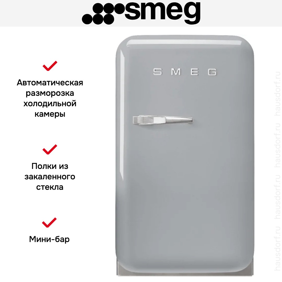 Отдельностоящий мини-бар Smeg FAB5RSV6 сочетает серебристую отделку с плавными формами и аккуратной внешней ручкой, создавая запоминающийся и универсальный образ. Его компактные габариты 74×40.4×50 см позволяют разместить устройство в уютной кухне, гостиной, гостиничном номере или офисе, не жертвуя стилем. Внутренний объем 34 литра оптимален для хранения напитков и закусок, при этом полка для бутылок и две регулируемые полочки из закалённого стекла повышают удобство повседневного использования.
