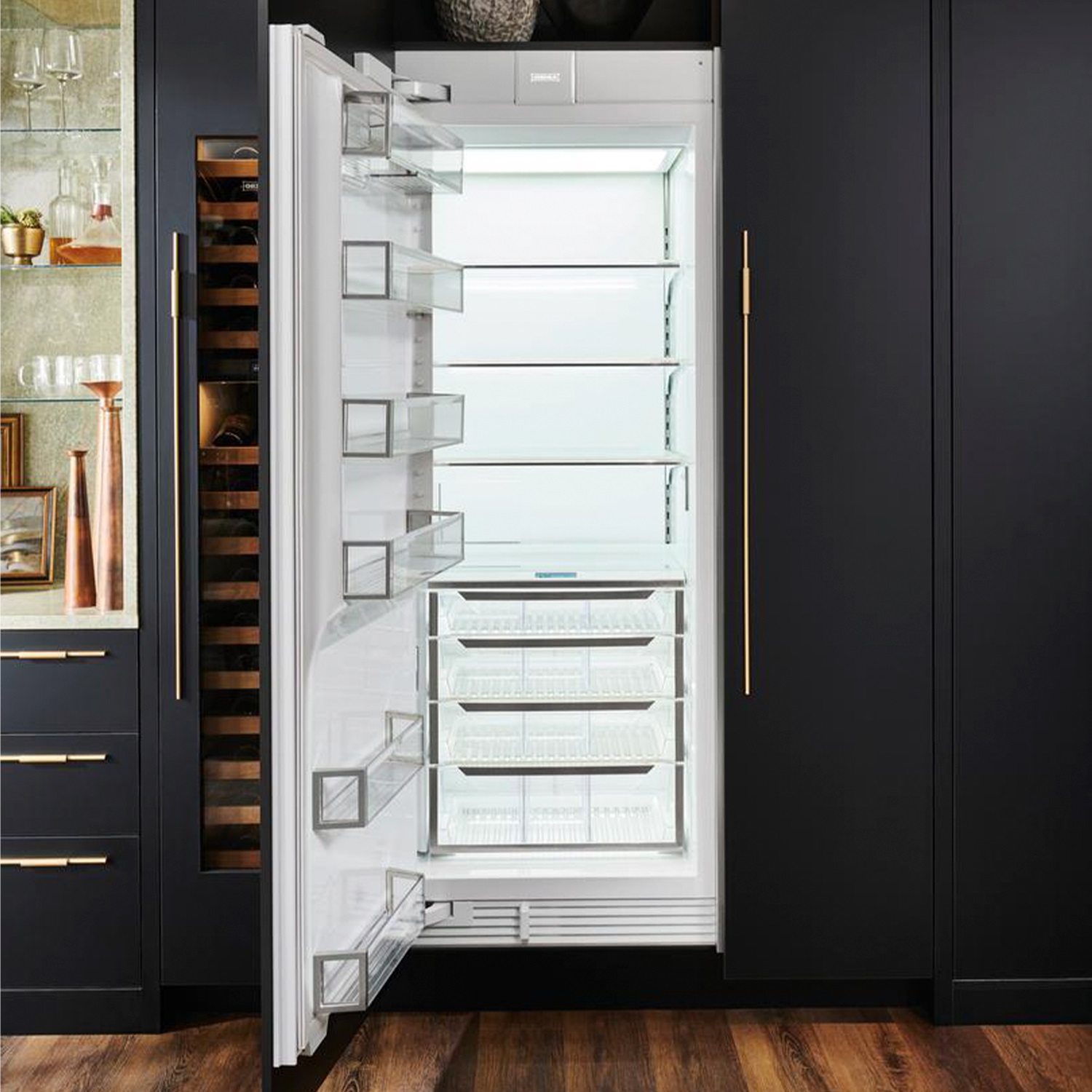 Четырех-, пяти- и шестикамерные модели включают, кроме морозильной и холодильной камер, отдельную зону свежести (иногда состоящую из сухого и влажного отсеков) и специальный отсек для ледогенератора, а в некоторых случаях еще и винное отделение.