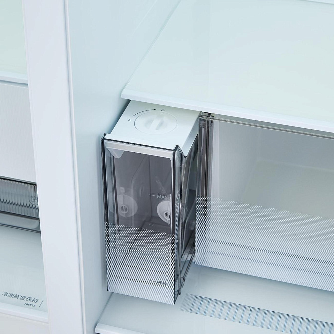 Специальная зона свежести предназначена для правильного и более длительного хранения овощей, фруктов, зелени. В ней поддерживается околонулевая температура, поэтому продукты не перемораживаются и не пересыхают. Ледогенератор в морозильной камере позволит быстро подготовить напитки к вечеринке или утолить жажду в жаркий летний день. Тип устройства: автоматический. Система охлаждения этого холодильника — динамическая.