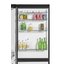 Для стеклянных бутылок, особенно винных и содержащих другие алкогольные напитки, предусматривается размещение на подвесной решетчатой металлической полке. Бутылки на ней располагаются в горизонтальном положении — это оптимальный способ хранения вин. Съемная металлическая полка легко моется под краном.