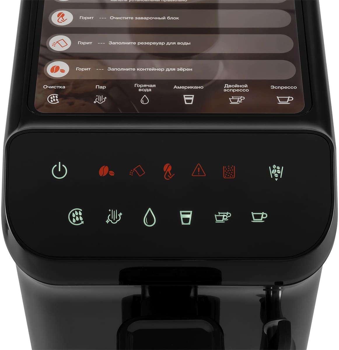 С помощью дисплея вы всегда сможете контролировать весь процесс работы кофемашины. На нем всегда будет транслироваться вся основная информация о выбранных программах и режимах.