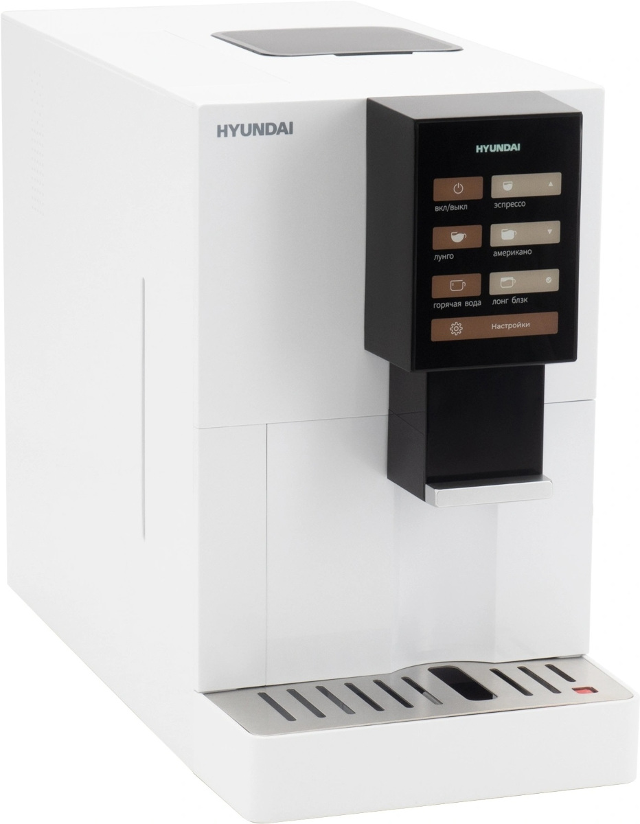 В модели Hyundai HAM-4103 используется зерновой кофе: вы можете экспериментировать с крепостью, горчинкой или кислинкой итогового вкуса, при этом качество помола зерен останется на высоте. Автоматическая кофемашина — по сути облегченная и уменьшенная версия приборов из кафе, она обладает широкими возможностями, разнообразным меню и продуманной системой контроля за процессом. Это отличный выбор как для дома, так и для офиса.