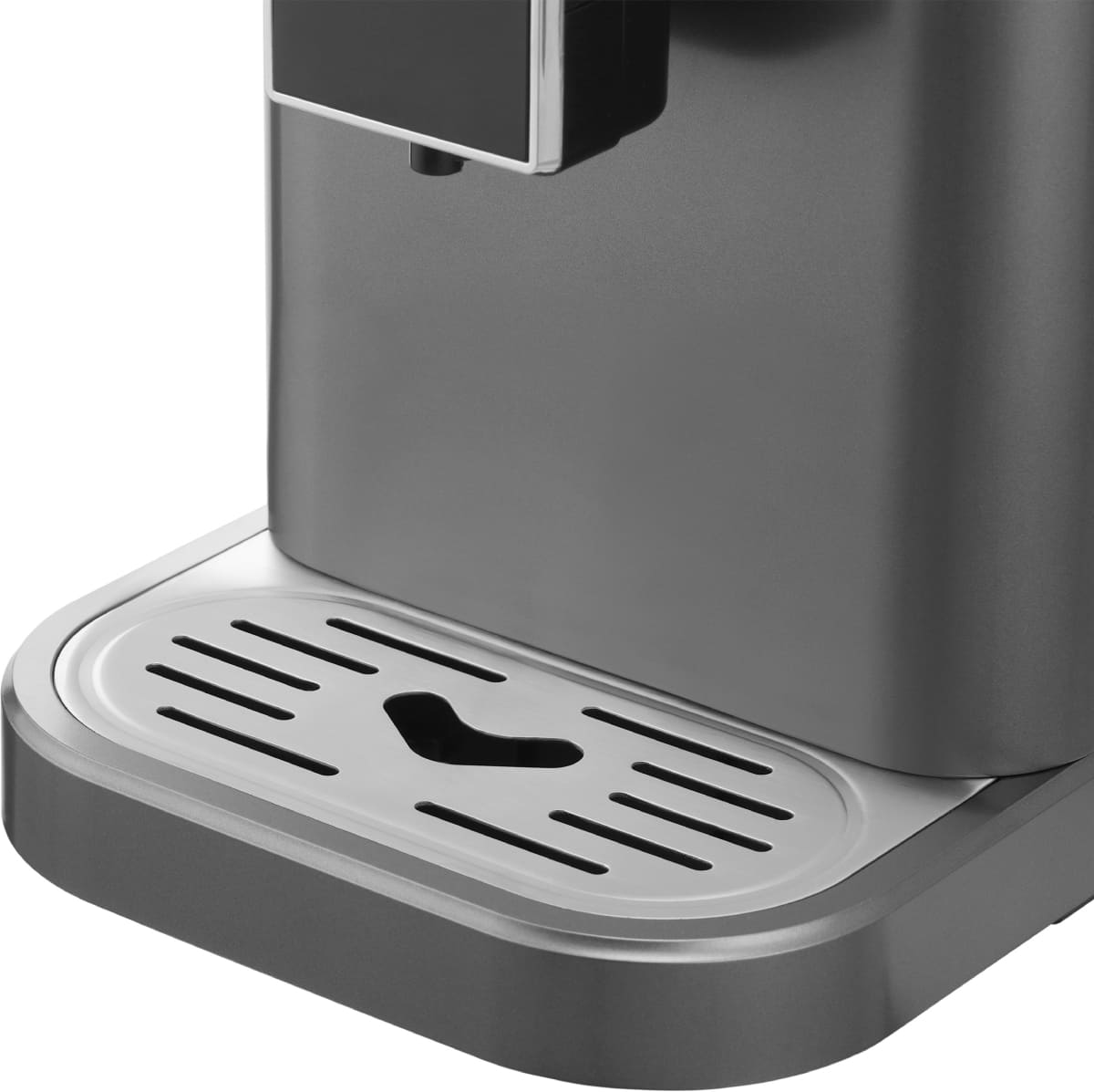 Габариты устройства — 32 см в высоту, 19 см в ширину и 43 см в глубину — делают его одним из самых узких в своём классе, что особенно ценно для небольших кухонь, квартир-студий или офисных зон. Несмотря на компактность, внутри размещены все необходимые компоненты: встроенная кофемолка с регулировкой степени помола, контейнер для зёрен, отсек для молотого кофе и система подачи пара (при наличии), что обеспечивает полную автономность.