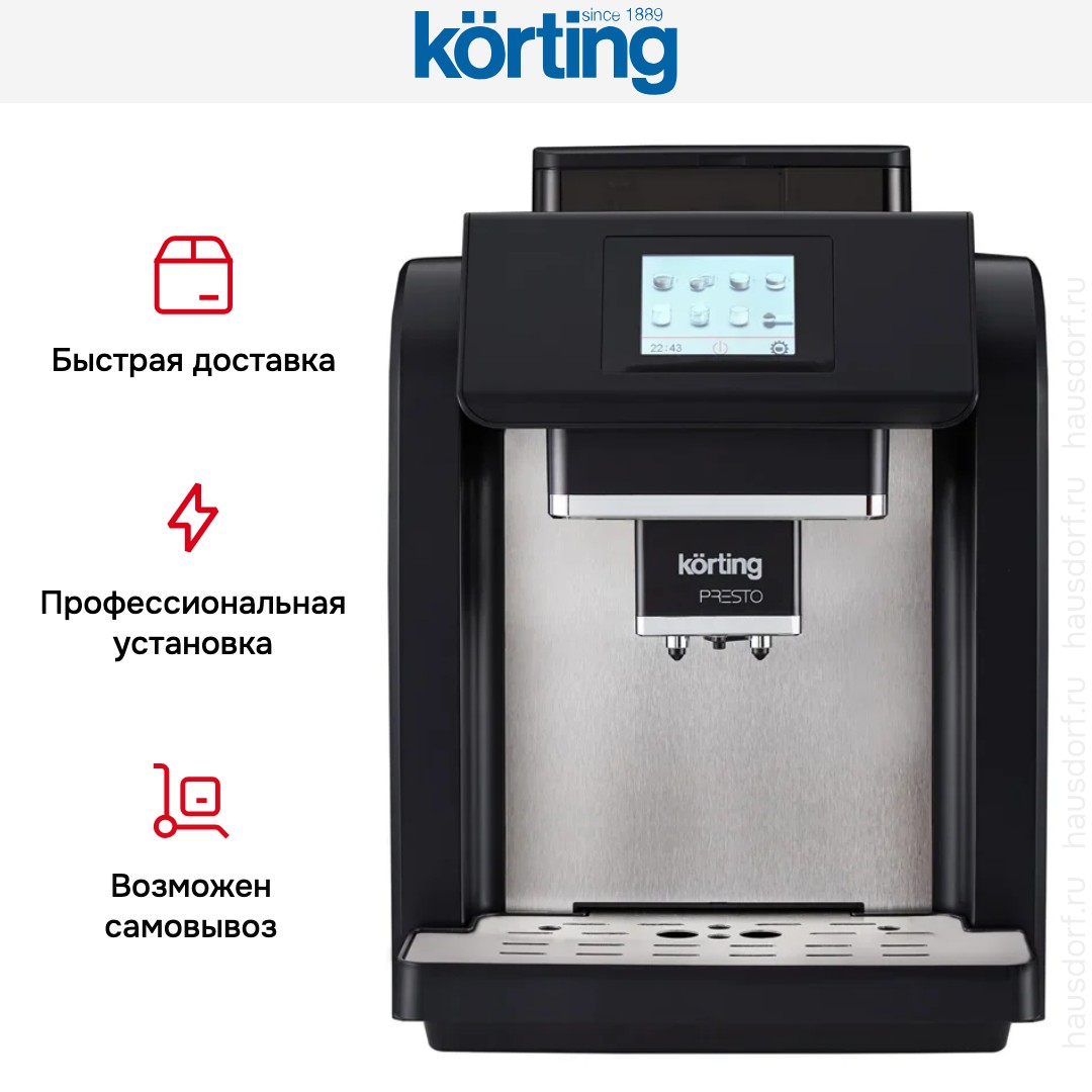 В модели Korting KACM 2009 Presto используются сразу два типа кофе — молотый и зерновой: это расширяет ваши возможности и увеличивает разнообразие напитков, которые можно приготовить с отличиями в крепости, ароматности и терпкости. Автоматическая кофемашина — по сути облегченная и уменьшенная версия приборов из кафе, она обладает широкими возможностями, разнообразным меню и продуманной системой контроля за процессом. Это отличный выбор как для дома, так и для офиса.