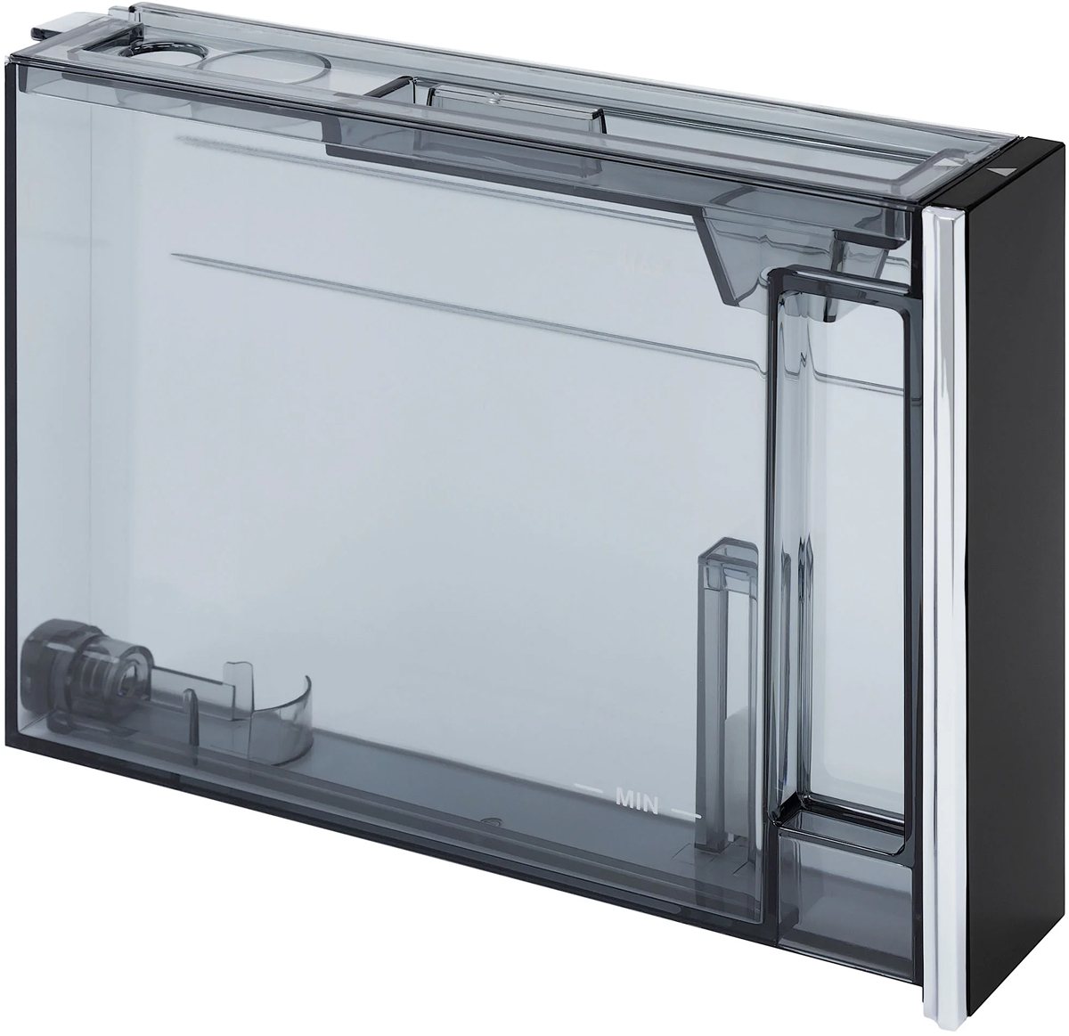 Съемный контейнер для воды во встраиваемых и отдельно стоящих кофемашинах — удобный аксессуар, позволяющий ускорить процесс приготовления напитков. Прозрачные контейнеры с легким доступом могут размещаться на фронтальной или верхней части машины. Для удобного извлечения они оснащаются ручками, залив воды производится через отверстие, которое можно закрыть плотной крышкой. Форма контейнера, как правило, прямоугольная, а материалом изготовления служит прозрачный безопасный пластик. Контейнеры могут оснащаться датчиком уровня воды для напоминания о необходимости их заполнения.
