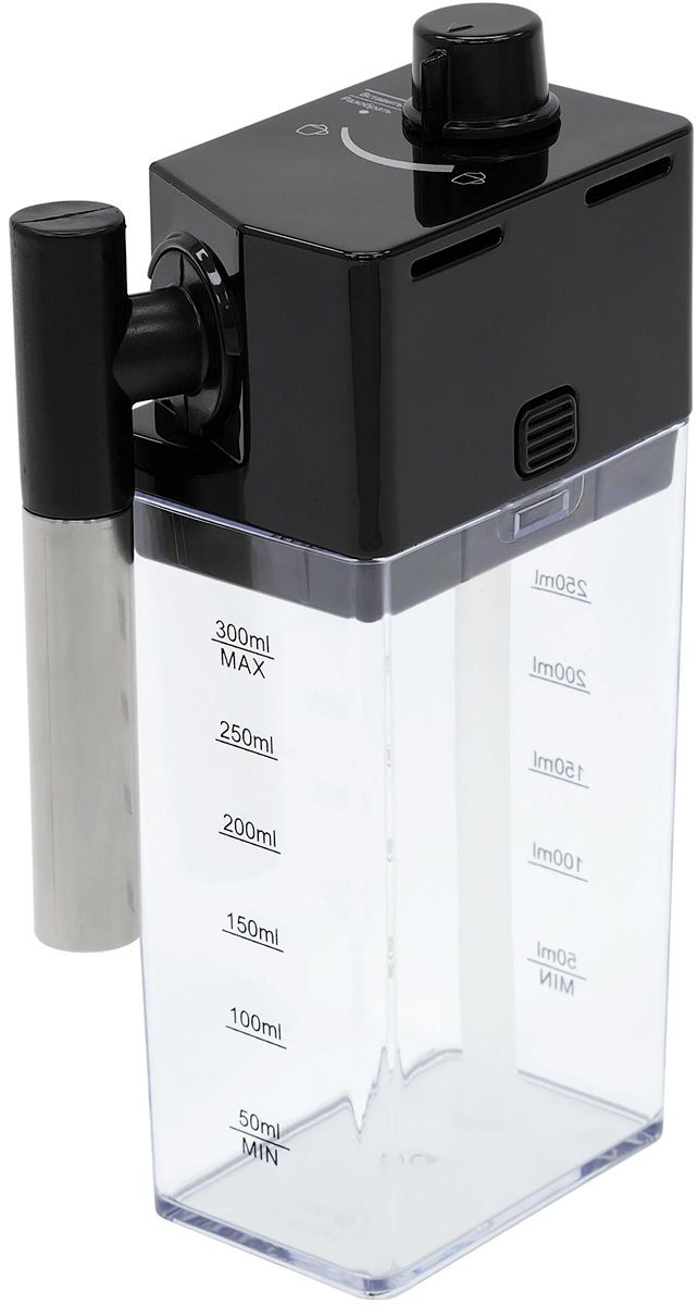 Съемный контейнер для молока в кофемашинах позволяет готовить латте или капучино, не боясь, что молоко испортится в стационарном резервуаре, а также гарантирует полностью автоматический процесс приготовления. Такой контейнер часто называют кувшином для молока благодаря характерной форме, удобной ручке и плотно прилегающей крышке. Контейнер можно легко извлечь сразу после приготовления напитка. Материал изготовления его — прозрачный экологически безопасный пластик. После извлечения контейнер можно хранить в холодильнике: как правило, использовать его следует в течение суток.