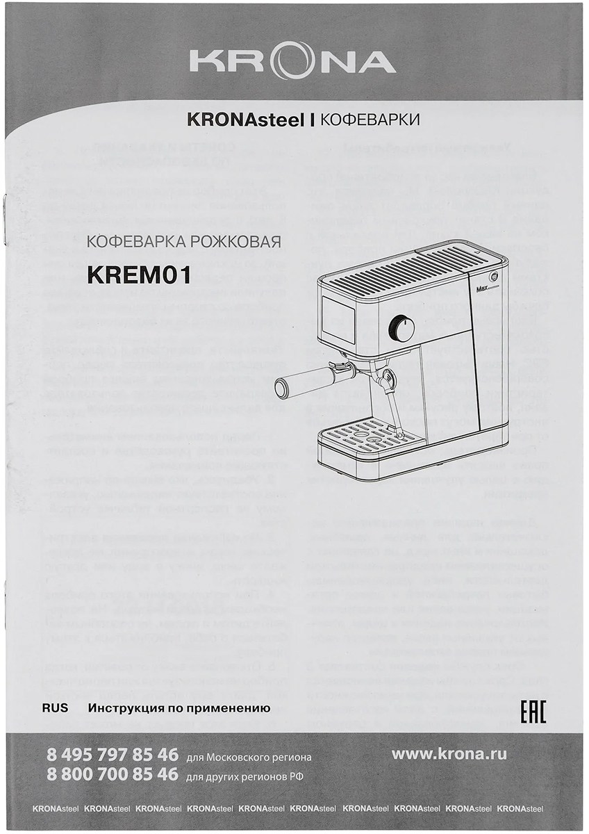 Кофеварка KRONA Espresso Kaffeemaschine Inox КА-00008023 в Тюмени