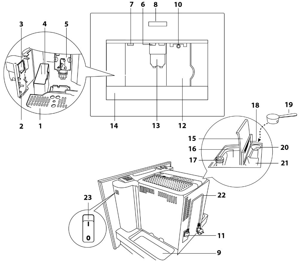 Встраиваемые кофемашины — автоматические устройства для приготовления напитков с молоком или без него. Весь процесс приготовления, от помола зерен и до очистки и промывки по завершении, происходит без участия пользователя. Машины оснащаются вместительными контейнерами для зерен, воды и молока с легким доступом. Размеры встроенных устройств позволяют устанавливать их в колонну с другой техникой: ширина составляет около 60 см, а высота — около 45 см. Как правило, все модели изготавливаются в современном стиле, оснащаются сенсорным управлением, подсветкой, полкой для подогрева чашек.