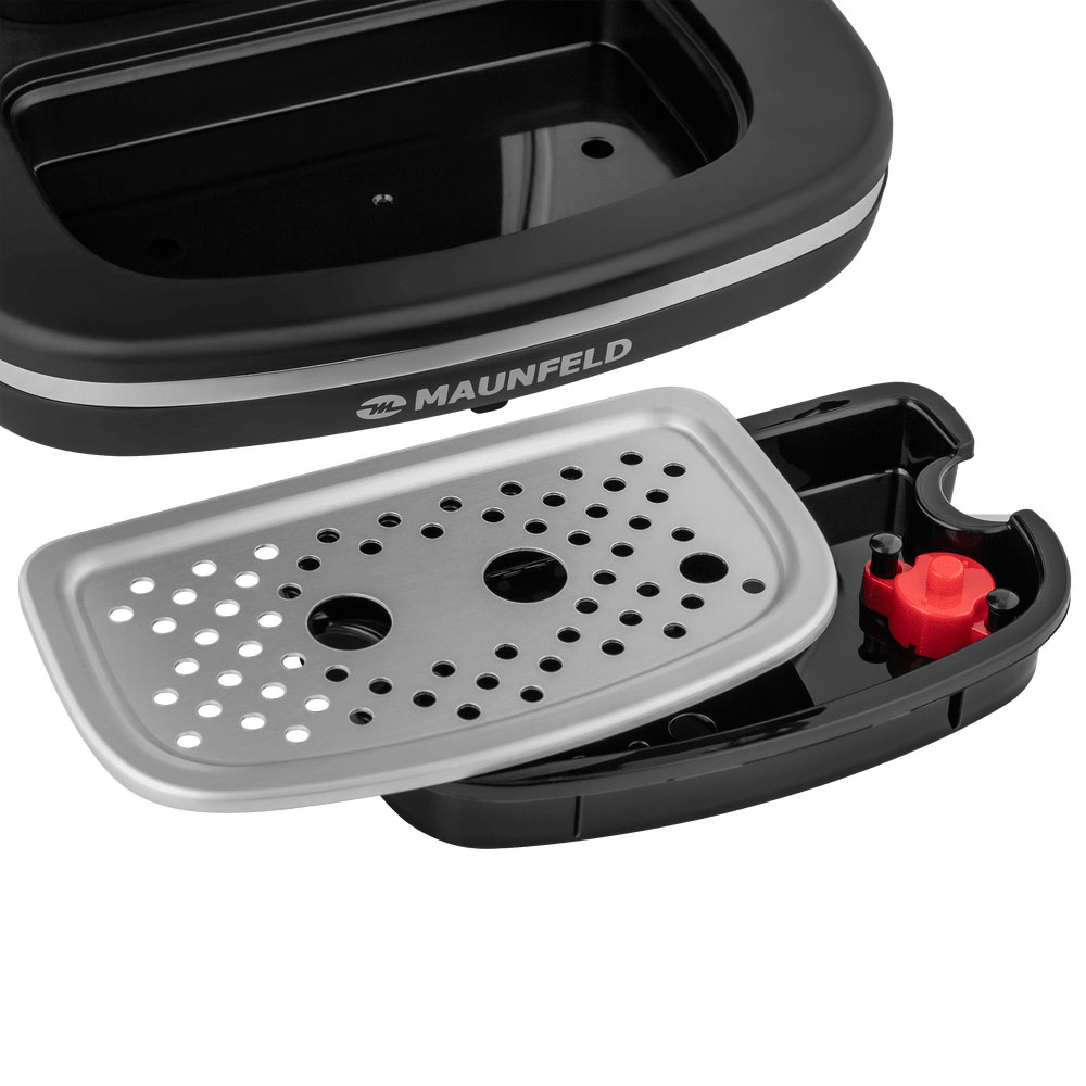 В данном приборе Маунфилд для нагрева воды используется бойлер — в нем постоянно поддерживается необходимая для приготовления температура, поэтому скорость варки кофе достаточно высокая. Единственный недостаток — после перерыва в работе требуется некоторое время, чтобы заново нагреть весь объем воды. Простое и понятное управление — дополнительное преимущество модели. Производители разместили на корпусе кнопочные / поворотные переключатели.