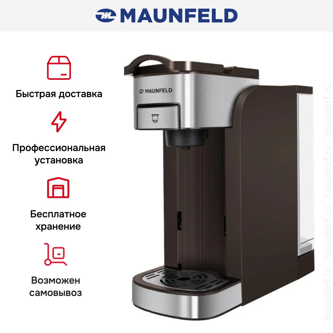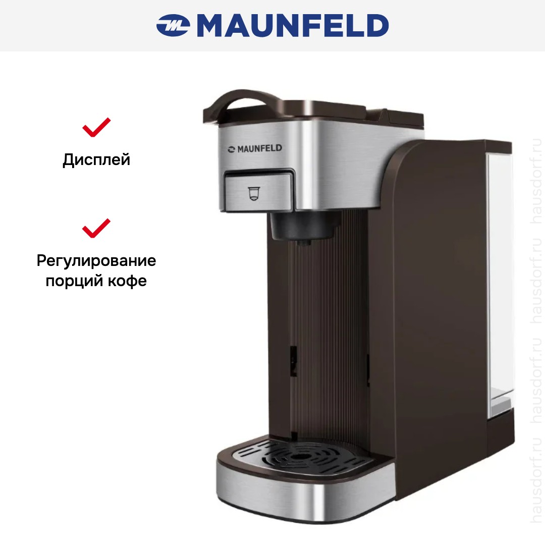 Капсульная Maunfeld MCCM-CM827BR представлена как универсальное решение для приготовления напитков из капсул и молотого кофе, сочетая компактность с расширенным функционалом.