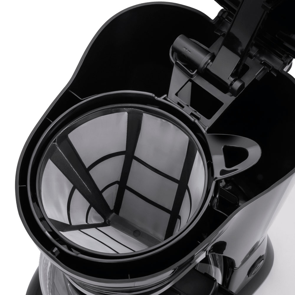 Конструкция продумана до мелочей: прозрачный резервуар с удобной шкалой объёма позволяет точно дозировать воду, съёмная воронка для фильтра упрощает очистку, а устойчивая подставка под колбу предотвращает опрокидывание даже при активном использовании. Корпус выполнен из качественных материалов, устойчивых к нагреву и ежедневному контакту с влагой, а чёрное исполнение придаёт устройству современный и лаконичный вид.