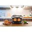 Габариты прибора составляют всего 18 × 38 × 32 см, что позволяет разместить его даже на небольшой столешнице без ущерба для функциональности. Несмотря на компактность, рабочая зона достаточно вместительна для приготовления стейков, овощей, сэндвичей, панини или рыбных филе за один заход. Корпус выполнен из прочных, термостойких материалов, устойчивых к перегреву и повседневному износу, а резиновые ножки надёжно фиксируют устройство на поверхности, предотвращая скольжение во время эксплуатации.