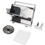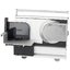 Единственная складная ломтерезка, которая занимает минимум места в сложенном виде. Ломтерезка комплектуется двумя ножами: зубчатым и гладким. Предусмотрен держатель для продуктов, гарантирующий безопасное использование устройства.