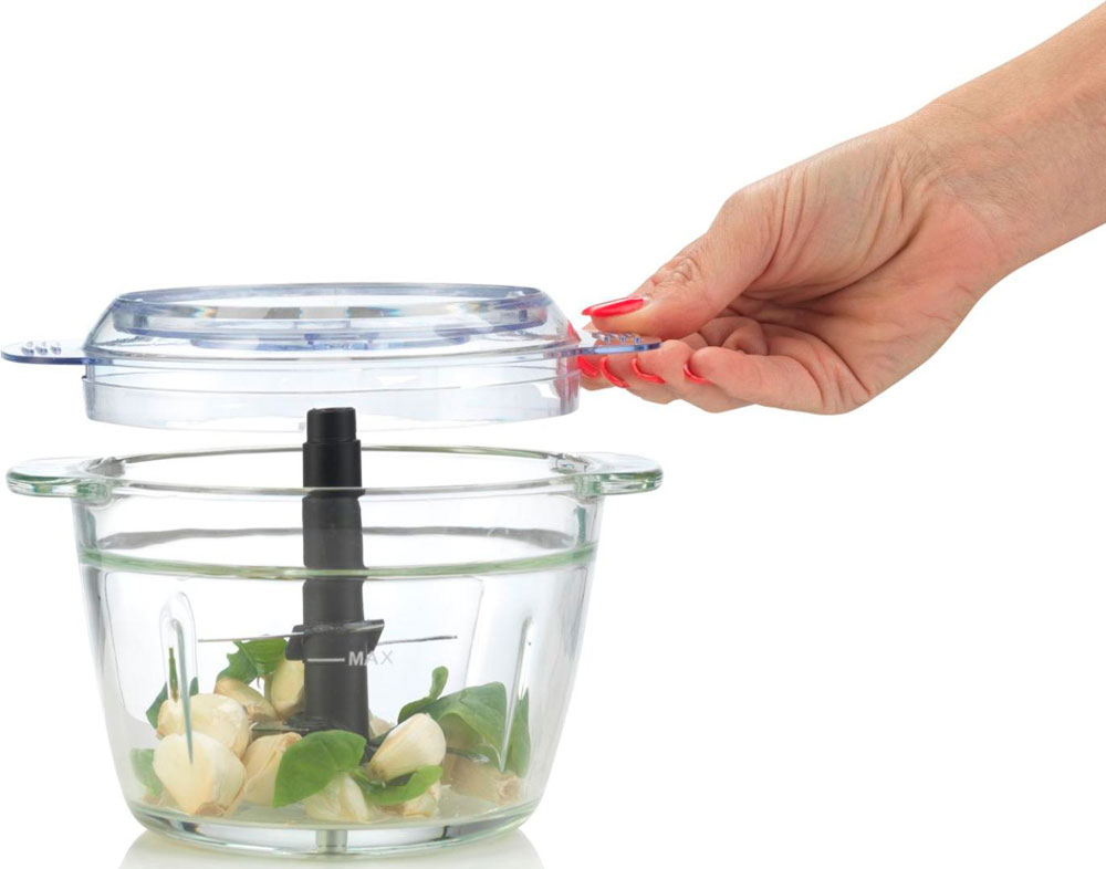 Рабочая чаша объёмом 1 литр оптимально подходит для повседневных задач: измельчения овощей, рубки зелени, приготовления соусов, паст, детского питания или мелкого помола орехов и специй. Несмотря на скромные габариты, устройство демонстрирует высокую эффективность благодаря острому лезвию и продуманной форме ёмкости, обеспечивающей равномерное перемешивание содержимого без образования комков или необработанных участков.