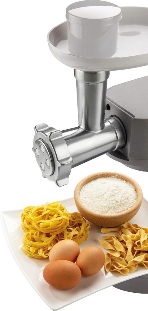 Аксессуары приобретаемые отдельно: 3 насадки для колбасок, блендер, насадка для печенья, 3 насадки для нарезки и шинковки, насадка для листов лазаньи, мясорубка + 4 диска, 5 малых насадок для пасты, насадка для узкой лапши и спагетти, насадка для широкой лапши и спагетти
