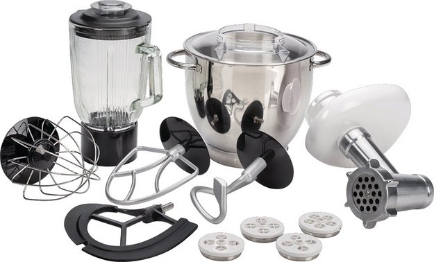 Современные кухонные комбайны — мощные многофункциональные устройства, способные заменить мясорубку, овощерезку, миксер, блендер и другие кухонные приборы. Для этого они в зависимости от модели комплектуются большим набором аксессуаров для измельчения, взбивания, нарезки, смешивания.