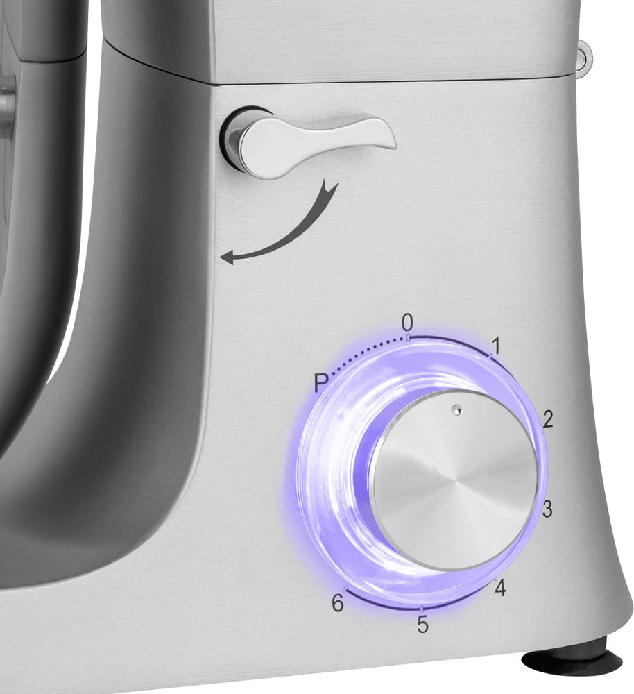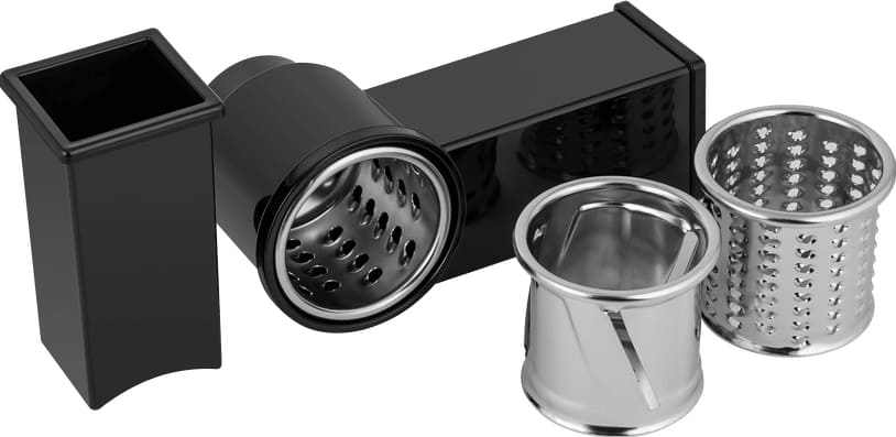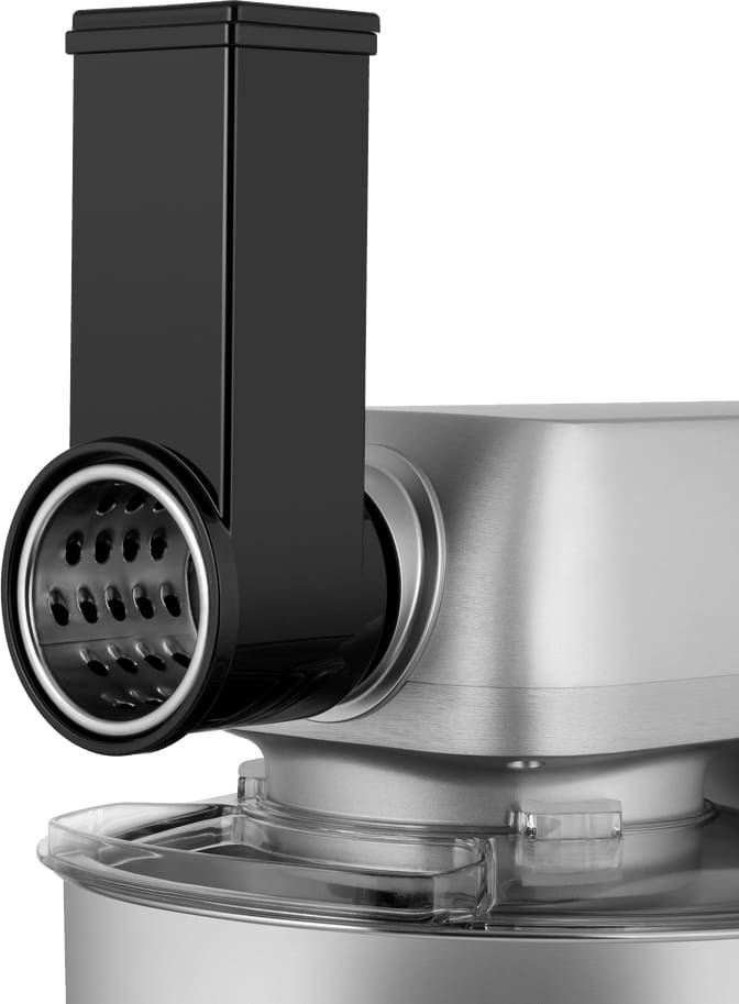 Центральным элементом конструкции является рабочая чаша из нержавеющей стали объёмом 6,2 литра — одна из самых вместительных в своём классе. Такой материал гарантирует долговечность, гигиеничность и устойчивость к коррозии, запахам и окрашиванию. Внушительная ёмкость позволяет без труда готовить большие порции: от дрожжевого теста и фарша до соусов, супов-пюре и овощных заготовок. Дополнительная чаша объёмом 1,5 литра расширяет функциональность — в ней удобно измельчать специи, орехи, чеснок или готовить небольшие порции десертов, не смешивая ароматов и экономя время на промывку основной ёмкости.