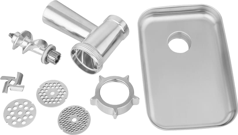 Особое удобство обеспечивает встроенный лоток для продуктов — с его помощью можно непрерывно загружать ингредиенты во время работы, не останавливая процесс. Это особенно ценно при нарезке овощей, шинковке капусты или приготовлении больших объёмов начинки, когда требуется равномерная и бесперебойная подача.