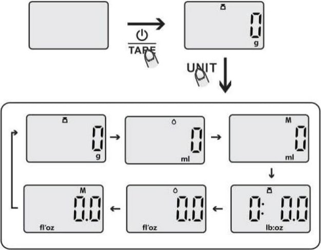 Электронные кухонные весы предназначаются для взвешивания любых продуктов питания, включая жидкости и сыпучие продукты. Автоматическое отключение электронных весов происходит, если на дисплее отображается «0» или значение веса не меняется на протяжении короткого времени — обычно более 2 минут.