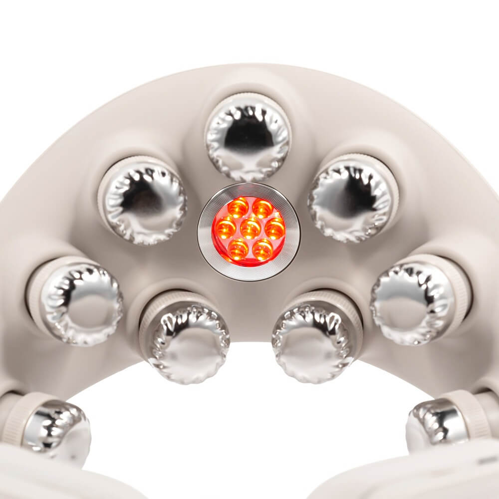 Дизайн продуман для комфортного прилегания и простоты управления. Регулировка под размер шеи позволяет точно настроить посадку, чтобы контакты и массажные элементы находились в нужных точках. Материалы поверхности мягкие на ощупь и характеризуются гипоаллергенностью, а внешняя конструкция надежна даже при ежедневном использовании.