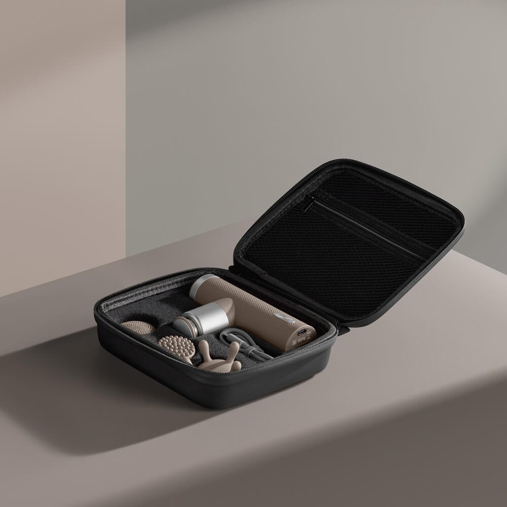 Перкуссионный массажер предназначен для расслабления мышц под давлением разной степени. Разные насадки подходят для лица, ладоней и ступней, тела.