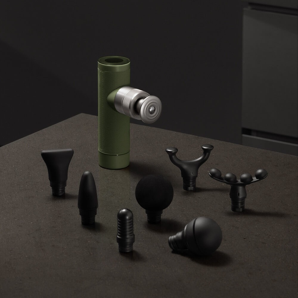 8 насадок: для плотных мышц, для триггерных точек, для стоп и кистей, для средних групп мышц, для мышц спины, для рук и бедер, для чувствительных частей тела, для всего тела