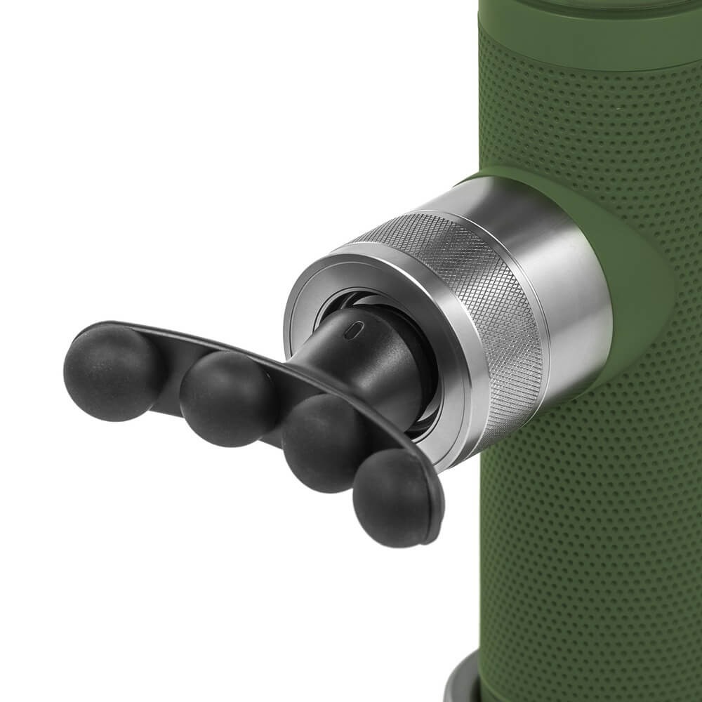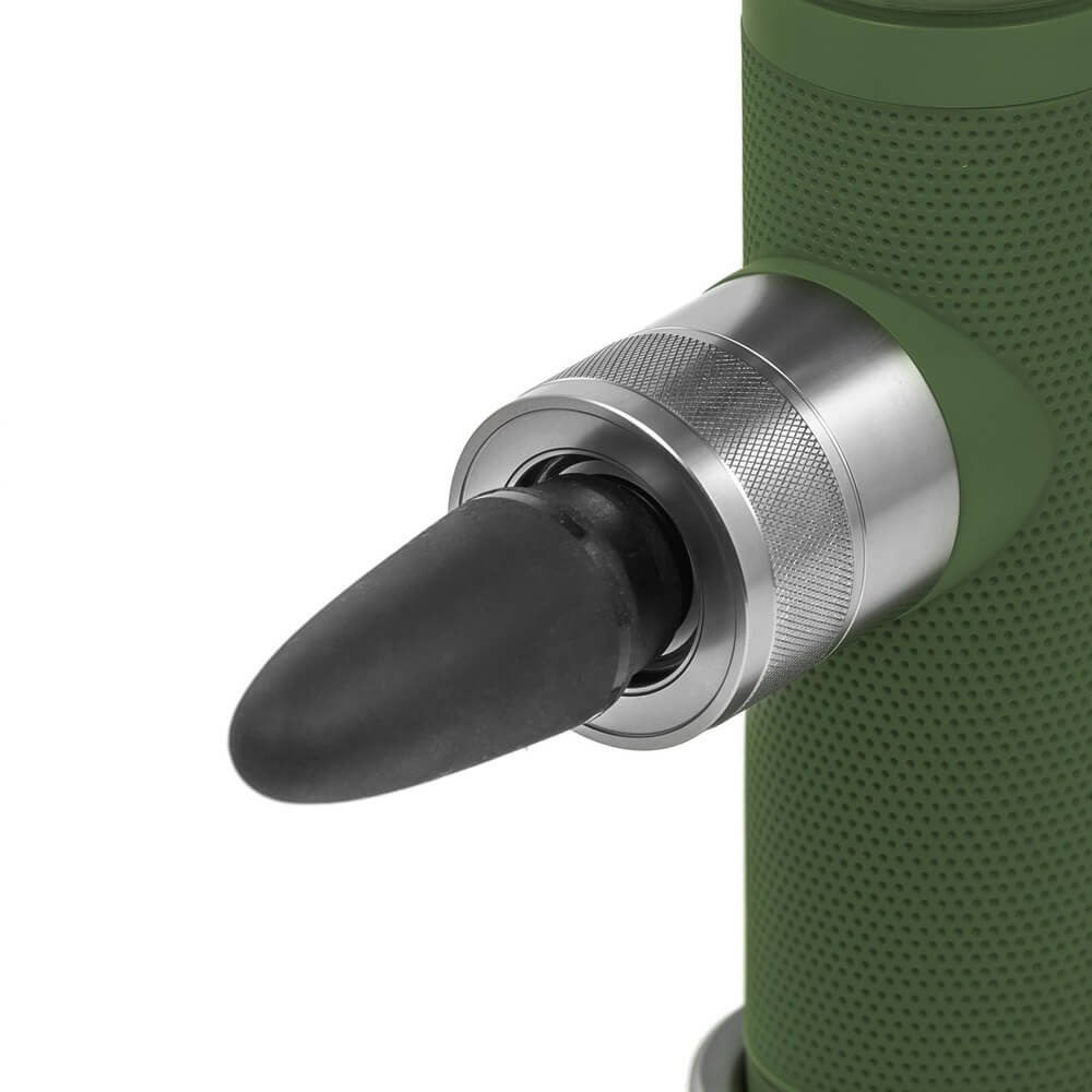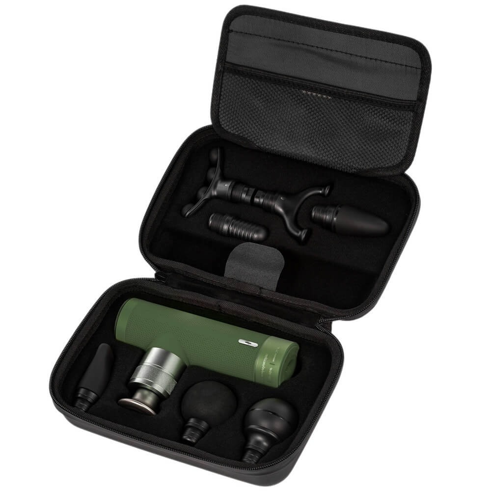 Несмотря на высокую производительность, устройство отличается миниатюрными размерами: всего 17 см в высоту, 9 см в ширину и 5 см в глубину. Его вес составляет менее 600 граммов, что делает массажер невероятно мобильным — его легко удерживать одной рукой, брать в дорогу или хранить в ящике стола. Яркий зелёный оттенок корпуса добавляет изделию динамики и свежести, подчёркивая его связь с активным образом жизни и заботой о здоровье.