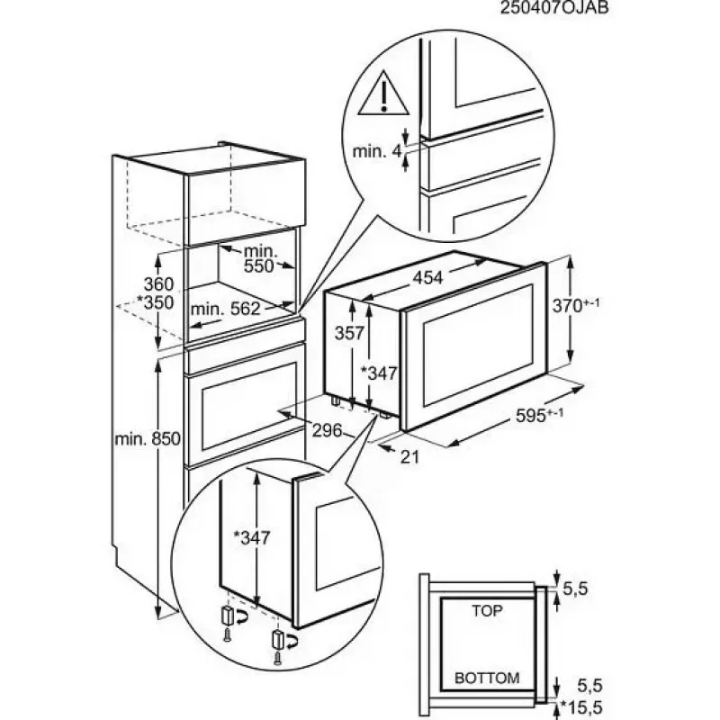 Глубина микроволновой печи —параметр, наиболее сильно влияющий на объем камеры и на диаметр вращающегося стеклянного блюда. Отдельно стоящие микроволновки соло, а также приборы, оснащенные грилем, имеют глубину от 35 до 45 см. При их установке на столешнице следует учитывать, в какую сторону и насколько широко будет открываться дверца. Глубина микроволновки, которая встраивается в кухонную мебель, также варьируется в широком диапазоне. Для полноразмерных моделей с откидной или навесной дверцей она может составить около 52-55 см, а для менее вместительных приборов — порядка 32-35 см.