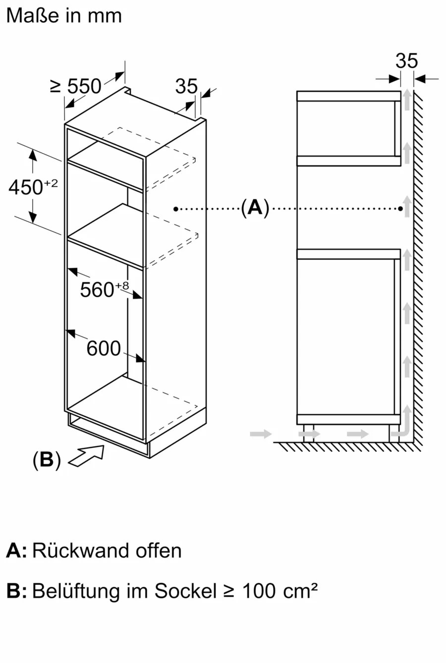 - Размеры ниши для встраивания (ВxШxГ): 38-38.2х56х55 cм