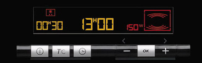 Панель управления включает в себя дисплей с синей подсветкой, таймер и сенсорные переключатели. Рабочий период времени таймера в этой модели составляет 60 минут. Есть возможность отсрочки старта – пользователь самостоятельно задает время включения и через указанный промежуток печь автоматически начинает работу в выбранном режиме.