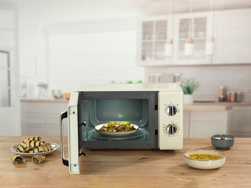 Отдельностоящая микроволновая печь Gorenje MO20E1HRL — компактное и полезное дополнение к уже имеющейся кухонной технике. Ее можно установить на шкаф, на свободную столешницу, но не рекомендуется ставить на другие приборы, например, холодильник. Цвет этой модели: бежевый. Дизайн-линейка: Retro, комбинируйте ее с другими приборами этой же серии.