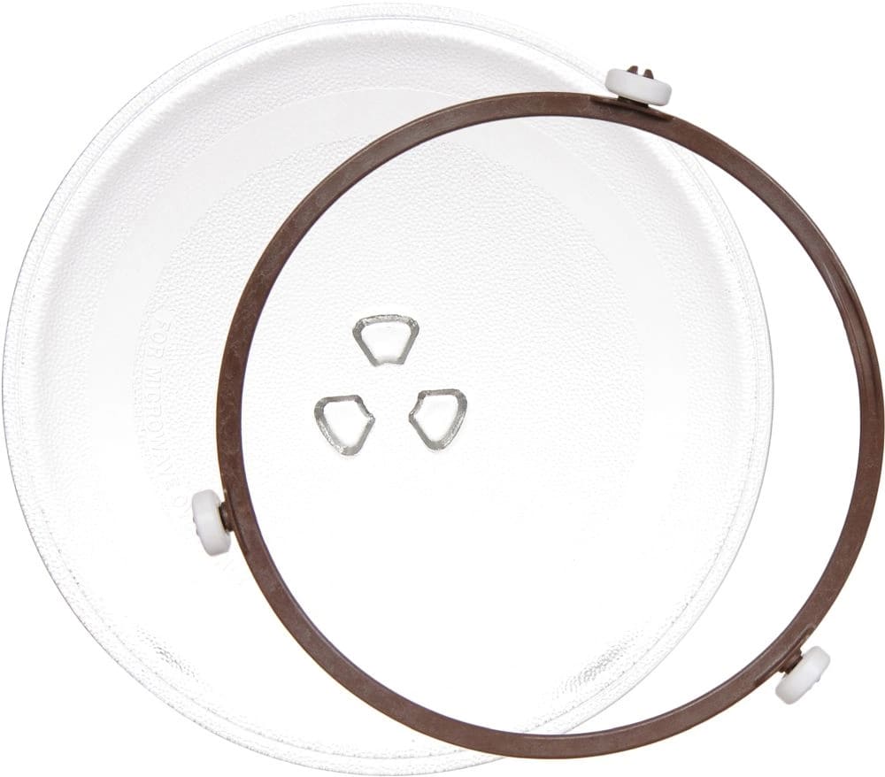 Вращающееся стеклянное блюдо в микроволновой печи позволяет микроволнам равномерно прогревать все блюдо. В большинстве печей магнетрон — источник электромагнитного излучения, — находится в нижней части корпуса или реже сбоку. Микроволны могут проникать в продукты как напрямую, так и отразившись от стенок и потолка камеры. Стеклянное блюдо, иногда называемое также поворотным столом или поддоном, устанавливается на вращающийся механизм с колесиками. Диаметр его зависит от объема камеры и может составить от 20 до 35 см. Размещать на нем можно как одну, так и несколько форм с готовящейся пищей.