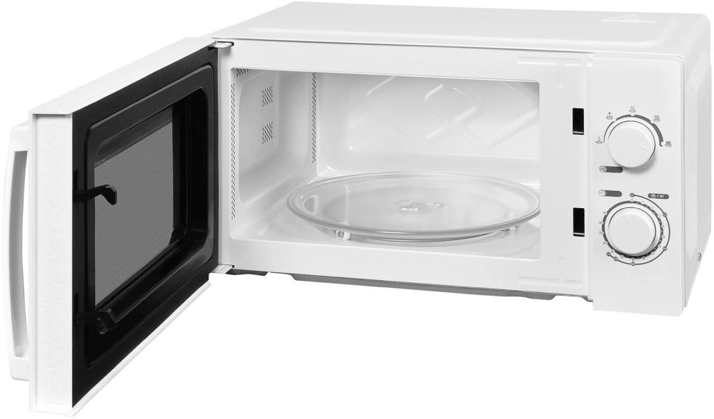 Материал внутренней поверхности — эмаль легкой очистки. Полезный объем для готовки — 20 л. Для установки и прогрева посуды используется классическое вращающееся блюдо. Стандартное механическое управление не вызовет трудностей ни у кого из вашей семьи. Для изменения настроек или выбора программ используются следующие переключатели: поворотные.