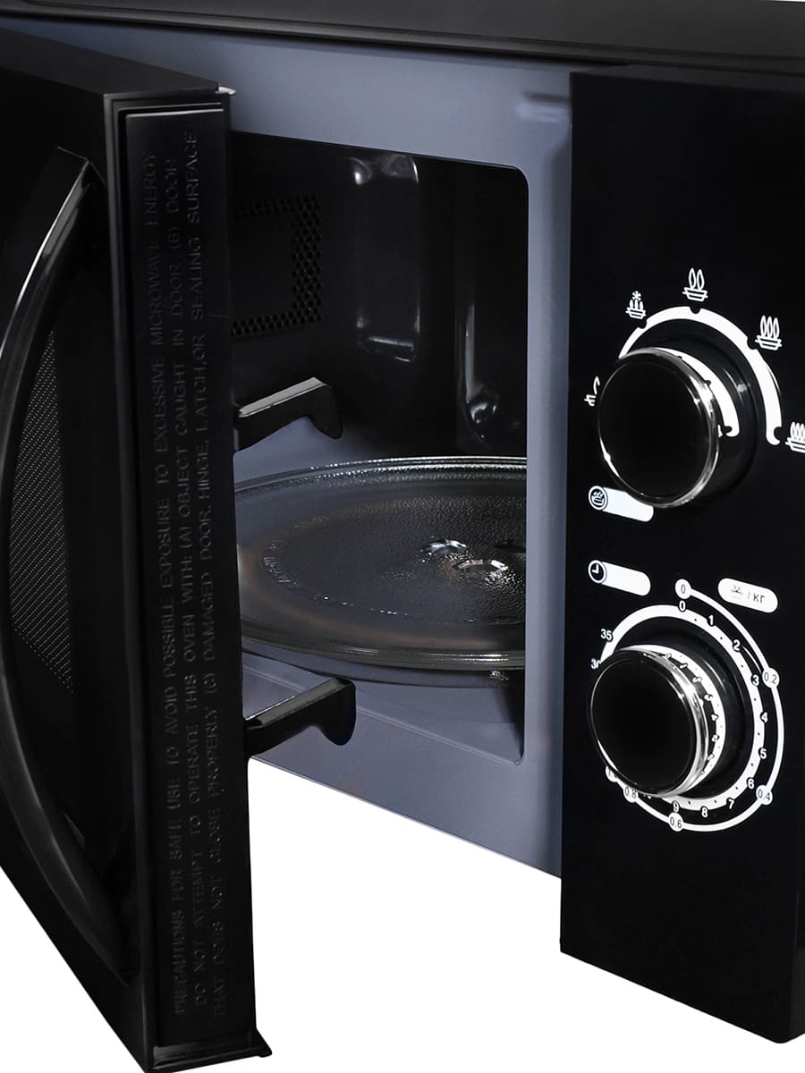 Материал внутренней поверхности — эмаль легкой очистки. Полезный объем для готовки — 20 л. Для установки и прогрева посуды используется классическое вращающееся блюдо. Стандартное механическое управление не вызовет трудностей ни у кого из вашей семьи. Для изменения настроек или выбора программ используются следующие переключатели: поворотные.
