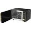 Управление электронное, сочетает сенсорную панель и поворотные переключатели, что обеспечивает и точность, и удобство выбора. Цифровой дисплей информативен, таймер и часы позволяют отслеживать процесс готовки. Дверца навесная с ручкой и упором слева удобна при размещении техники на разных стендах. Внутреннее покрытие камеры — нержавеющая сталь, она устойчива к царапинам и проще в уходе, чем эмаль.