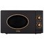 Дизайн выполнен в стиле ретро, что придает ей особую изысканность. Черный цвет корпуса и бронзовая фурнитура создают элегантный и стильный образ, который будет гармонично смотреться на любой кухне. Внутреннее покрытие камеры выполнено из нержавеющей стали, что обеспечивает долговечность и удобство в уходе. Дверца печи навесная, открывается при помощи кнопки. Упор двери расположен слева, что обеспечивает удобство использования. Управление осуществляется при помощи механических поворотных переключателей. Такое решение не только подчеркивает ретро-стиль дизайна, но и обеспечивает простоту и надежность управления.