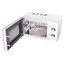 Внутренняя камера из нержавеющей стали устойчива к коррозии и механическим повреждениям, а также ускоряет отвод тепла при гриле. Стеклянное вращающееся блюдо диаметром 24.5 см обеспечивает равномерный прогрев продуктов и легко снимается для мытья. Дверца с кнопочным открыванием и дверным упором слева обеспечивает удобный доступ к камере, а поворотные механические переключатели просты в управлении и не требуют сложных настроек.