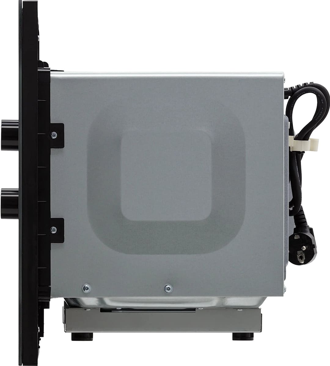 Микроволновые печи могут иметь навесную или откидную дверцу. Модели с навесной дверцей, запирающейся на механические защелки, могут быть как встраиваемыми, так и отдельно стоящими. Такие СВЧ-печи с дверцей, открывающейся влево или вправо, могут относиться к любой категории цен: от самых простых и дешевых до премиальных моделей. Недостатки дверцы с петлями сбоку — выступающая ручка, которая затрудняет очистку фасада, и небольшой угол открытия не более 90 градусов, который может препятствовать, например, размещению прибора в углу. Если ручка действительно мешает, стоит выбрать модель, дверца которой открывается нажатием на кнопку или прикосновением к сенсору на боковой панели управления.